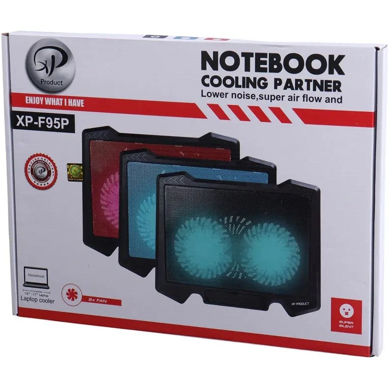 پاییه خنک کننده XP-F95یک عدد فن 140 میلی متری دارد و ابعاد ان بصورتی است که برای لپ تاپ های تا 15 اینچی مناسب است . این کول پد 685 گرم وزن دارد و ظاهر ان شبیه به یک مسطتیل طراحی شده است طول این پایه 330 میلیمتر وعرض ان 260 میلیمتر و ضخامتش 40 میلیمتر است و باعث میشود دستگاه در حین کار کردن داغ نشود .