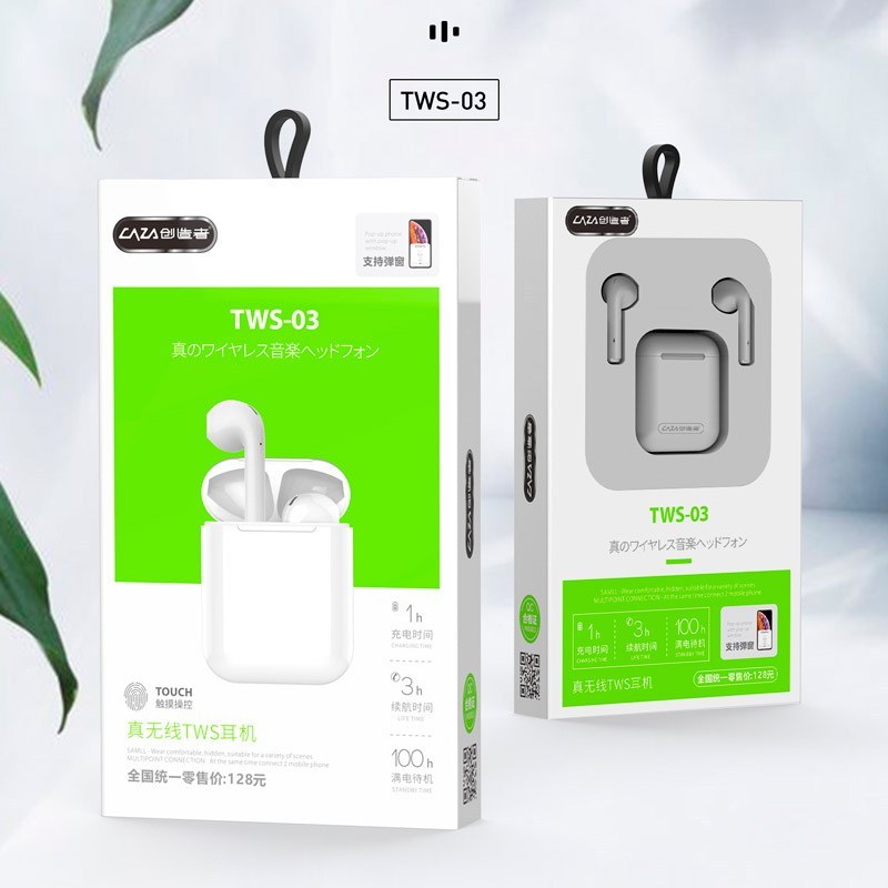 هندزفری بی سیم دوتایی Caza مدل TWS03هندزفری دوتایی Caza مدل TWS-03 جهت برقراری ارتباط با انواع گوشی موبایل، تبلت و دیگر گجت ها از اتصال بی سیم پشتیبانی می کند و توسط بلوتوث نسخه 5٫0 تا شعاع 10 متری اتصالی پایدار و بدون افت کیفیت را برقرار نگه می دارد. قدرت خروجی صدای این هدفون بی سیم با درایو 7٫2 میلی متری به صورت استریو در دامنه فرکانسی 20 هرتز تا 20 کیلوهرتز به گوش می رسد. سری های آن با طراحی ارگونومیک به خوبی داخل گوش قرار می گیرند و برای استفاده طولانی مناسب بوده و خستگی و ناراحتی را برای کاربر به وجود نمی آورند. از قابلیت های کاربردی این هدفون مجهز بودن به فناوری TWS می باشد که اتصال سری ها را به صورت تکی و یا جفتی به دستگاه های مختلف فراهم می کند تا امکان گوش دادن به آهنگ مشابه توسط دو نفر و صرفه جویی شارژ باتری برای مواقع اضطراری وجود داشته باشد.